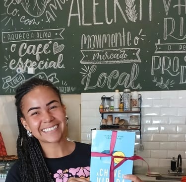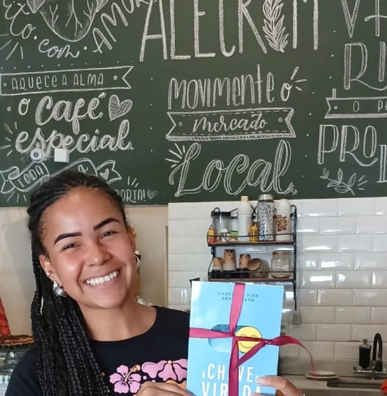 Hoje, correndo de lá pra cá, mesmo o corpo não atendendo ao comando da mente em 100%, fui a uma consulta com a médica Mirela Moraes. Depois, pra lubrificar o carburador, fui ao aconchegante mercadinho "Café com Alecrim" tomar água. Como uma forma de agradecimento a elegância, atenção e simpatia da atendente Iara, lhe presenteei com o livro "A Chave da Virada". Muito sorridente a agradecida, Iara disse: "Estou precisando de uma virada em minha vida".