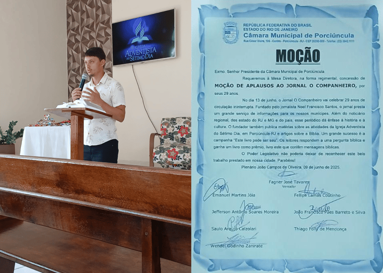 De autoria do vereador Fagner Tavares (MDB), a Câmara Municipal de Porciúncula, no Noroeste do RJ, conferiu uma "Moção de Aplausos" a O COMPANHEIRO pelos 29 anos de circulação ininterrupta. Fundado em 13 de junho de 1996 pelo jornalista, artista plástico e bacharel em Direito, Noel Francisco, o jornal consolidou-se como um dos mais destacados da imprensa Fluminense e da Zona da Mata de MG.